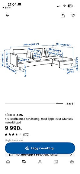18 000 krMio Town 3-sits soffa med vänster divan & höger schäslong – nyskick 4 månader MioNorsborg2 dagarLägg till i favoriter.