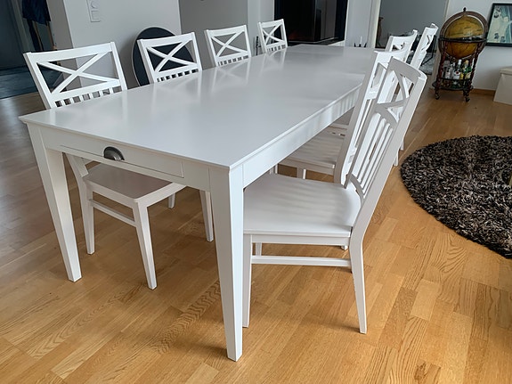 2 500 krUtdragbart matbord + 6 stolar – vit matgrupp i fint skick IKEAAlafors9 aprLägg till i favoriter.Öppna annons