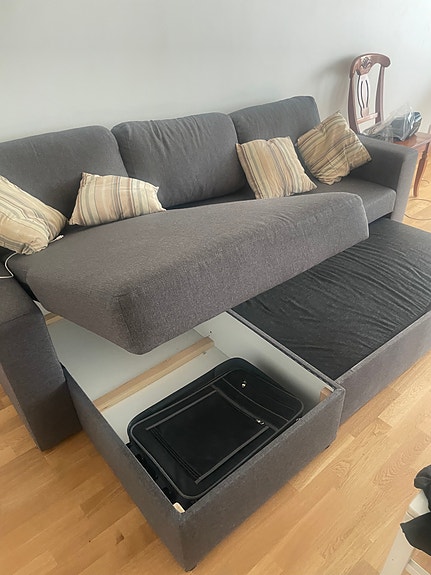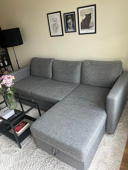 3 990 krElegant grå bäddsoffa med smart förvaring – perfekt skick IKEANorsborg10 timLägg till i favoriter.