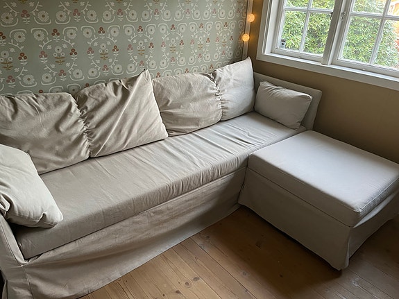 10 000 krIKEA Vimle bäddsoffa med schäslong och fotpall i Gunnared beige IKEADanderyd20 timLägg till i favoriter.