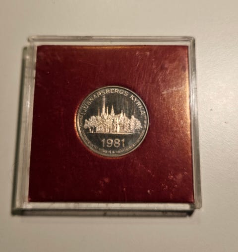 450 krLjusnarsbergs kommun lokalmynt från 1981 med motiv av Ljusnarsbergs kyrkaNacka11 timLägg till i favoriter.