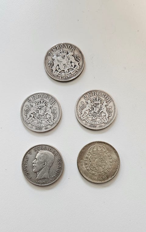 280 krSäljer 5 mynt, Svenska 2 kronors mynt från 1876, 1907, 1910 och 1945.Nacka13 timLägg till i favoriter.