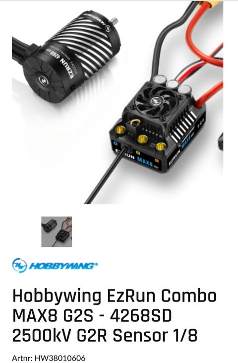KöpesKöpes: Hobbywing EzRun Combo MAX8 G2S - 4268SD 2500kV G2R SensorKungsbacka5 dagarLägg till i favoriter.