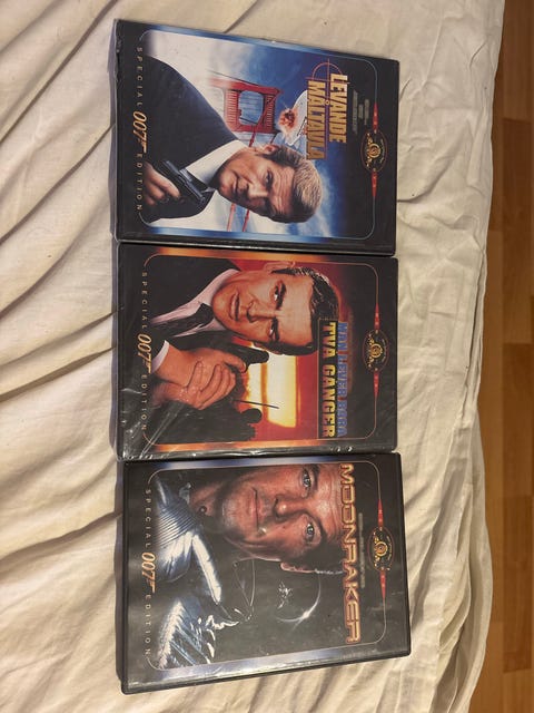300 krJames Bond 007 3 filmer 2 inplastade 1 öppnad men som nyObbola4 dagarKöp nuLastbil i rörelseKan skickasLägg till i favoriter.