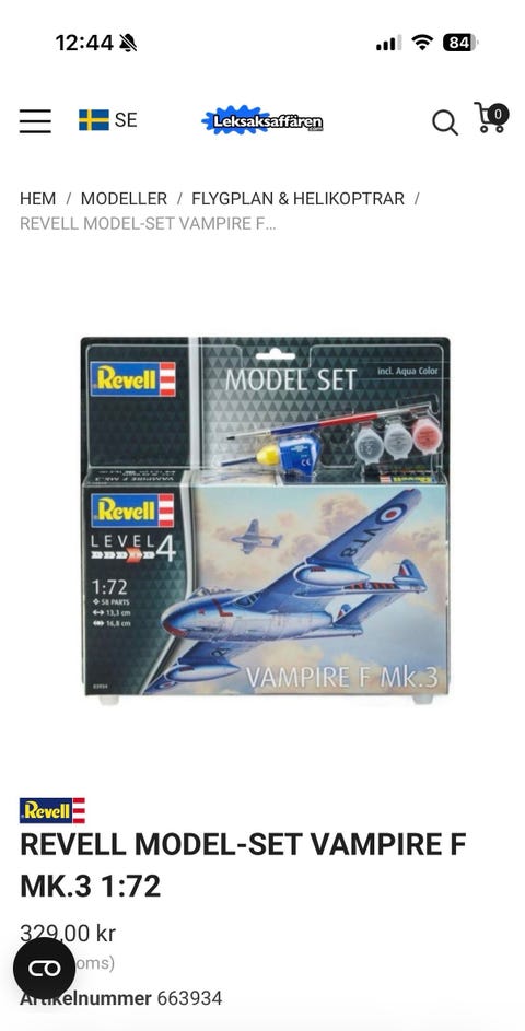 200 krRevell Vampire F Mk 3 Modellset 1:72Täby1 timKöp nuLastbil i rörelseKan skickasLägg till i favoriter.