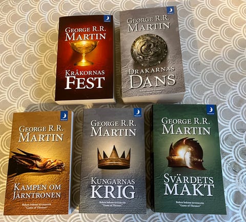 250 krGeorge R.R. Martin Bokserie Game of ThronesSollentuna16.12.25Köp nuLastbil i rörelseKan skickasLägg till i favoriter.