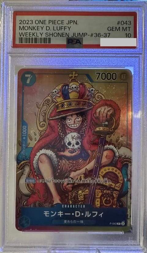 1 999 krPSA 10 Monkey.D.Luffy One Piece Card Japanese P-043 Weekly Shonen Jump PromoGöteborg4 dagarKöp nuLastbil i rörelseKan skickasLägg till i favoriter.