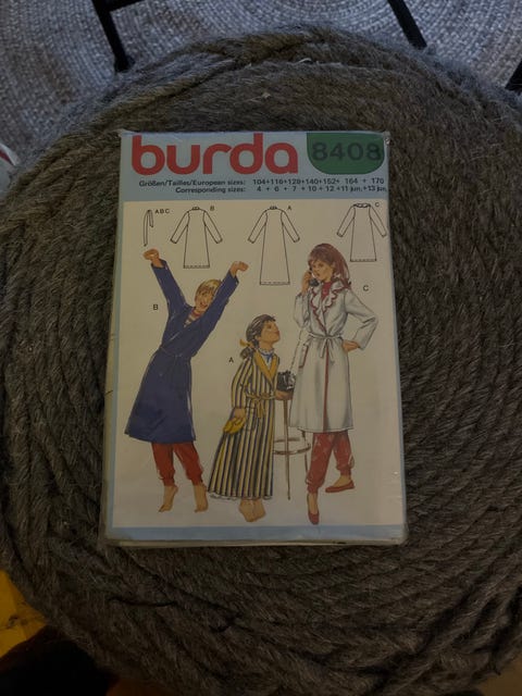 20 krBurda 8408 symönster barn morgonrock klänningKode3 timKöp nuLastbil i rörelseKan skickasLägg till i favoriter.