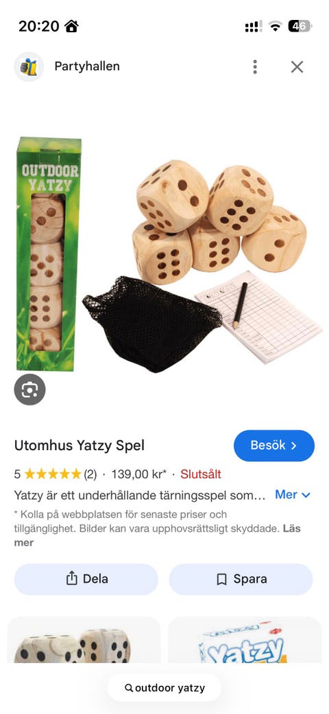 40 krOutdoor Yatzy tärningsspel trä utomhusStockholm12 febLastbil i rörelseKan skickasLägg till i favoriter.