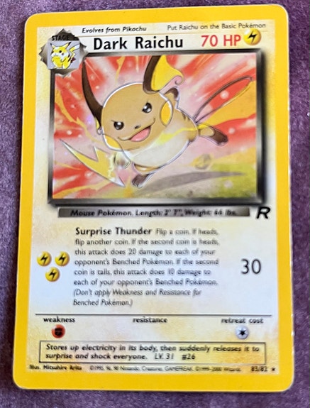 500 krPokémonkort Dark Raichu Team Rocket holo 83/82 stjärnaSollentuna1 dagKöp nuLastbil i rörelseKan skickasLägg till i favoriter.Öppna annons