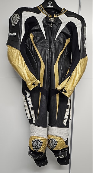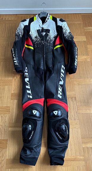MC-kläder herr/dam – Revit skinnställ, Shoei hjälm, Alpinestars