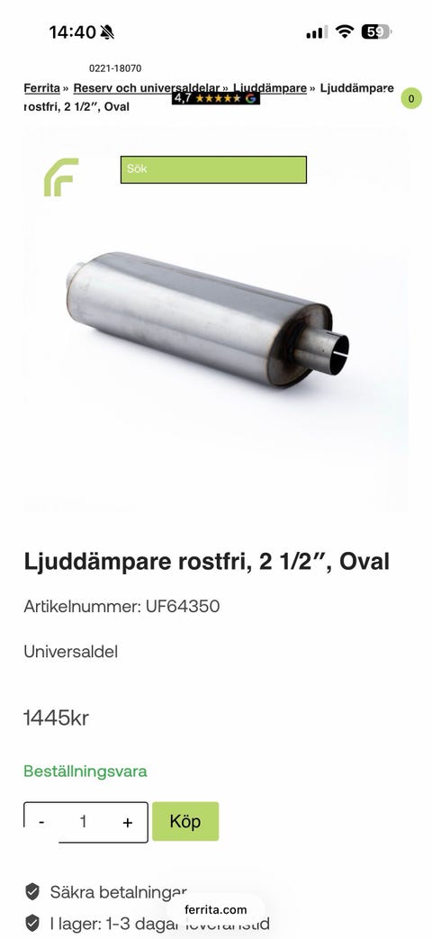 Ferrita 2.5” ljuddämpare