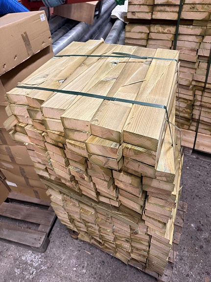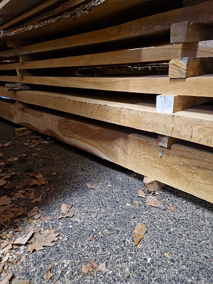 Sågade träplankor virke