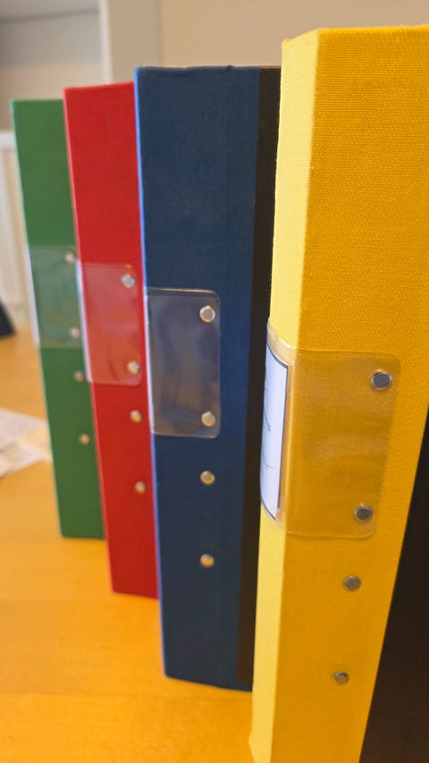 Standardpärmar i olika färger skänkes