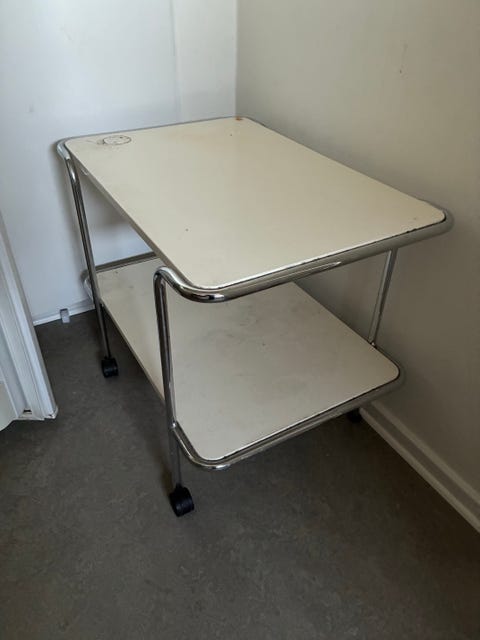 Rullbord två hyllplan vit metall