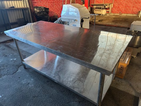 Rostfri bänk med hylla