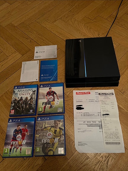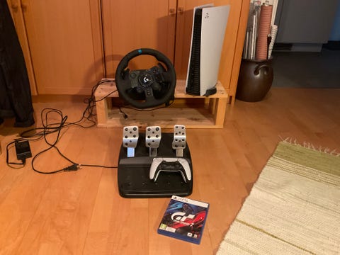 Sony Playstation 4 Pro spelkonsol med handkontroller och racerratt Logitech G29