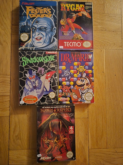 2 000 krNintendo NES spel Shadowgate Dr. Mario Tecmo Sword of Sodan Swords and SerpentsGävle2 dagarLägg till i favoriter.