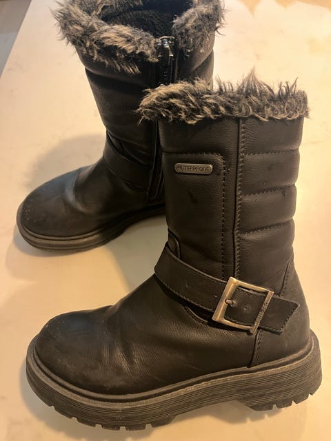 Kvalitetsskor kan vara ganska dyra. Genom att köpa begagnade kan du till exempel få vinterstövlar till ett lägre pris, och kanske till och med ett extra par för de morgnar då stövlarna inte hunnit torka efter lek i snön. Mellansäsongsskor, barnsneakers och gummistövlar blir snabbt för små när barnen växer. Om du planerar att köpa begagnade barnskor - kontrollera skornas skick i annonsen och kolla storlekstabellen på tillverkarens hemsida.