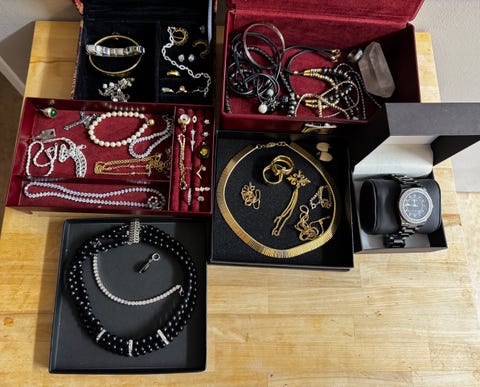 Massa med smycken, klocka m.m.