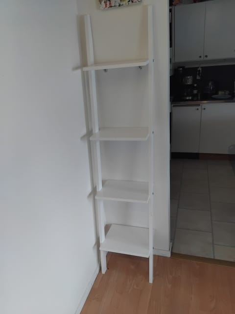 Vit hylla med flera plan