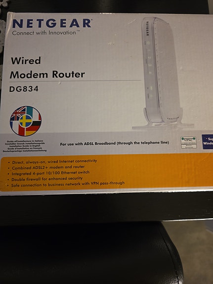 300 krNetgear DG834 Router trådbundenJönköping8 aprGratis frakt•Köp nuLastbil i rörelseKan skickasLägg till i favoriter.