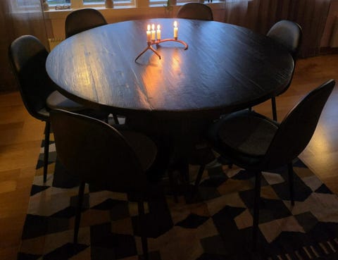 Svart runt köksbord och stolar