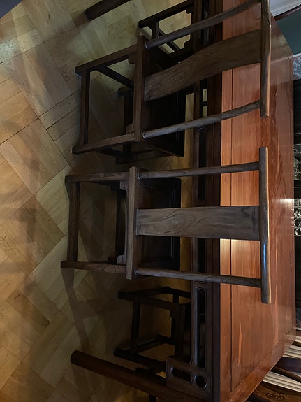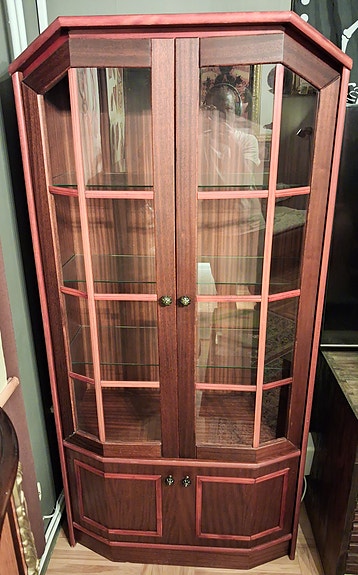 Vitrinskåp i mörkt trä