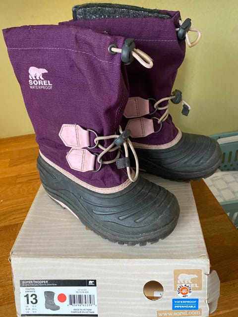 Kvalitetsskor kan vara ganska dyra. Genom att köpa begagnade kan du till exempel få vinterstövlar till ett lägre pris, och kanske till och med ett extra par för de morgnar då stövlarna inte hunnit torka efter lek i snön. Mellansäsongsskor, barnsneakers och gummistövlar blir snabbt för små när barnen växer. Om du planerar att köpa begagnade barnskor - kontrollera skornas skick i annonsen och kolla storlekstabellen på tillverkarens hemsida.