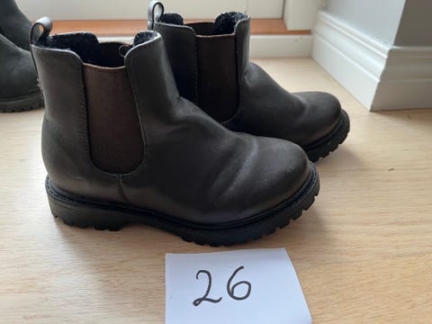 Kvalitetsskor kan vara ganska dyra. Genom att köpa begagnade kan du till exempel få vinterstövlar till ett lägre pris, och kanske till och med ett extra par för de morgnar då stövlarna inte hunnit torka efter lek i snön. Mellansäsongsskor, barnsneakers och gummistövlar blir snabbt för små när barnen växer. Om du planerar att köpa begagnade barnskor - kontrollera skornas skick i annonsen och kolla storlekstabellen på tillverkarens hemsida.
