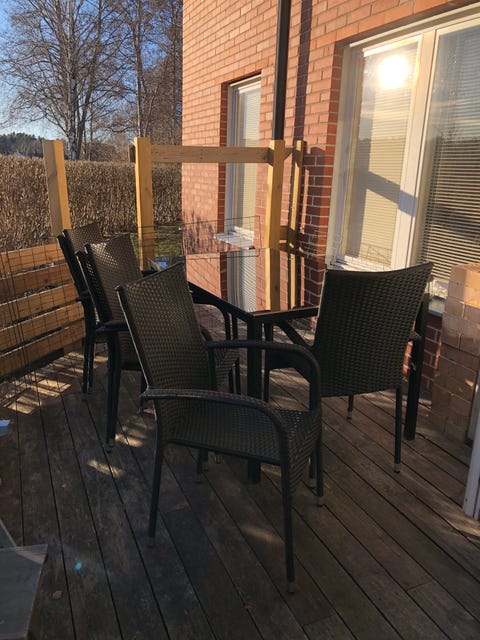 1 500 krMatgrupp utomhus glasbord med 6 stycken svarta stapelbara stolar med hör ryggBålsta40 minLägg till i favoriter.
