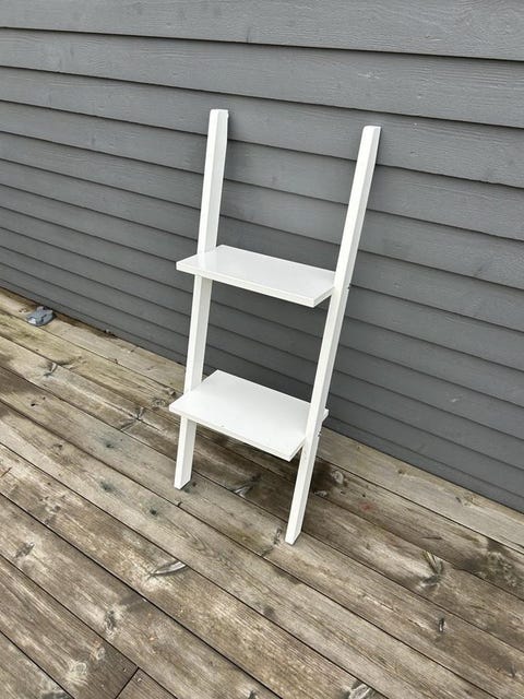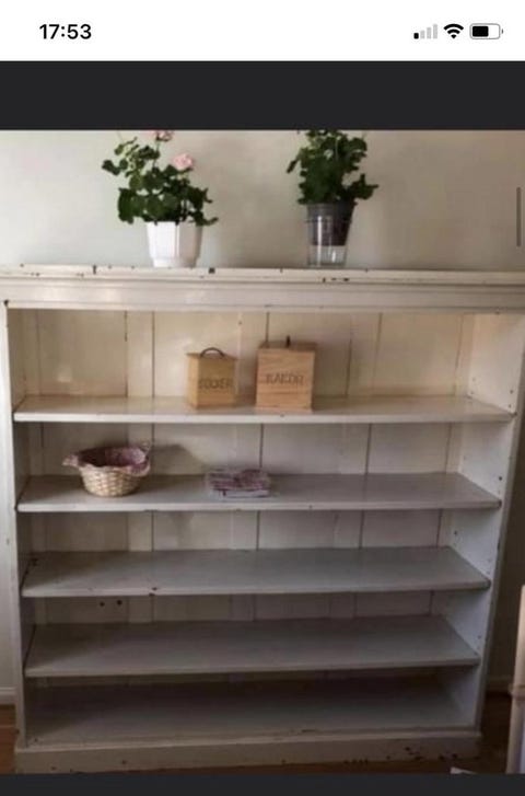 SKÄNKES Vit sänggavel med tillhörande hylla