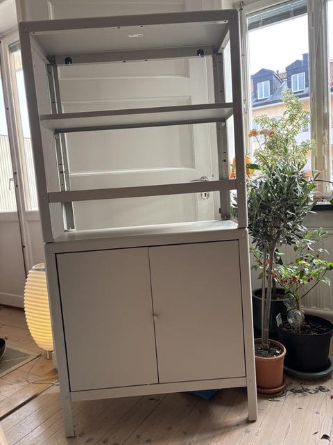 Hylla med öppna hyllplan och med dörrar förvaring året r