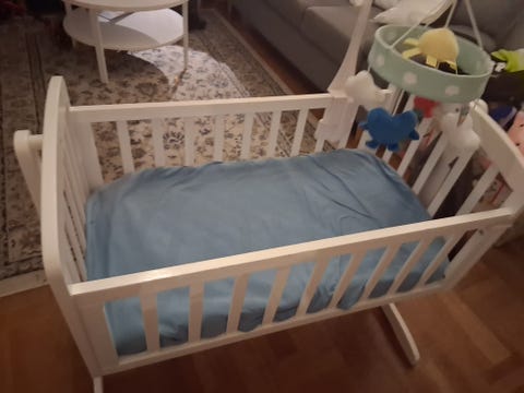 250 krBaby vagga med babbalarn mobil + helt nytt spjälskydd madrass o 2 kuddar IKEAArboga8 decLägg till i favoriter.
