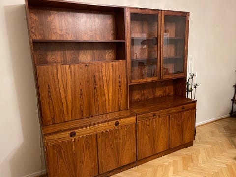 Vit träskänk med skåp och hyllor