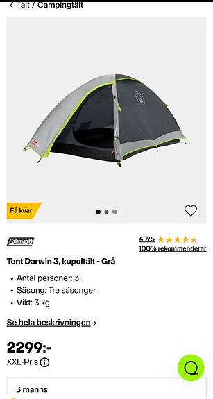 2 300 kr3 PERSONERS TÄLT – HELSPORT - NYTT & OANVÄNT!Torslanda12 marKöp nuLastbil i rörelseKan skickasLägg till i favoriter.