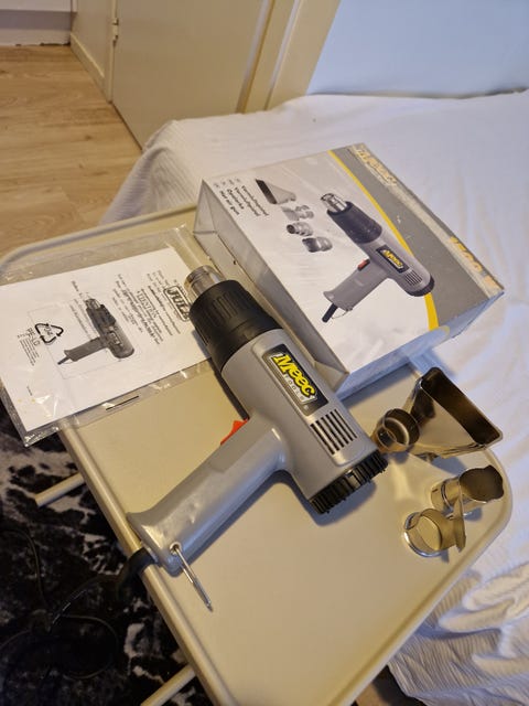 Varmluftspistol med alla dess tillbehör