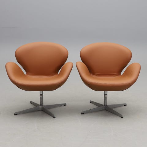 Arne Jacobsen Svanen • Cognac läder • Patinerad vintage • Made by Fritz Hansen