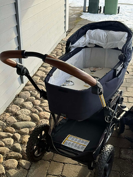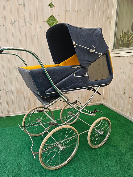 Emmaljunga barnvagn med liggdel och sittdel svart/blå