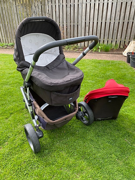 Emmaljunga barnvagn med liggdel, sittdel och babyskydd