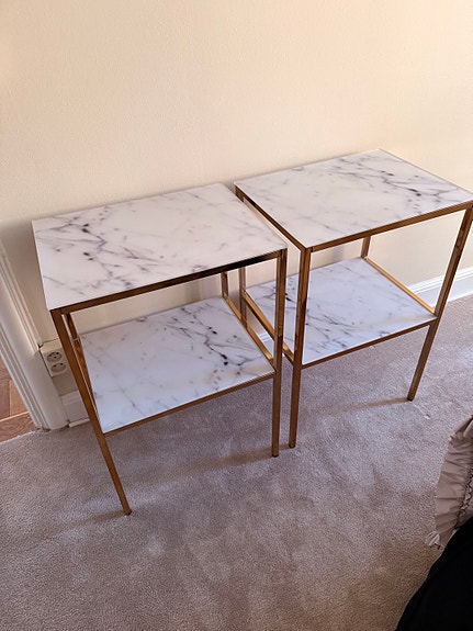 Ett par äldre sängbord med marmorskiva