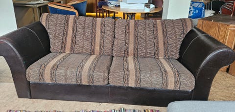 Rymlig 3-sitssoffa i skinn och tyg