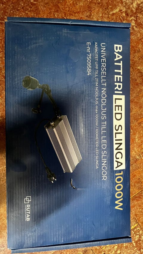 2 500 krRutab Batteri LED SLINGA 1000W nödbelysningGöteborg3 dagarKöp nuLastbil i rörelseKan skickasLägg till i favoriter.