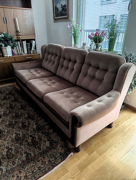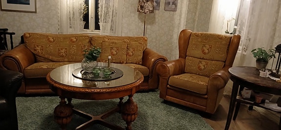 Äldre soffgrupp med bord