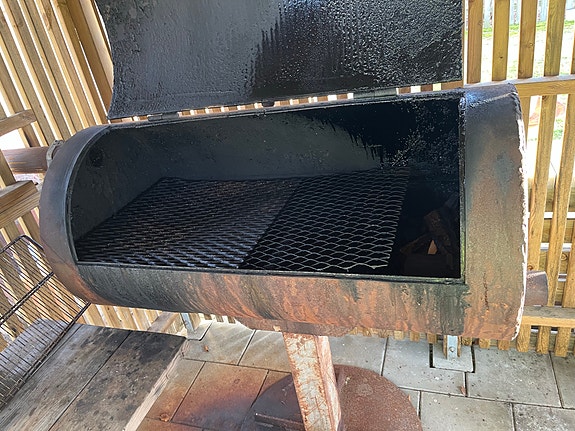 Grilltunna kolgrill med termometer och förvaringshyllor