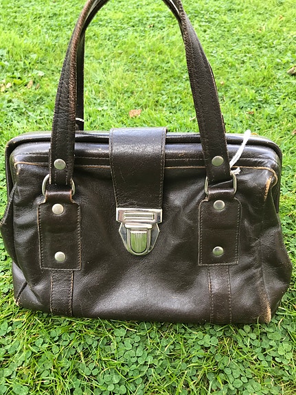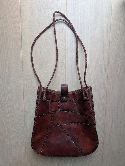 Handsydd läderväska