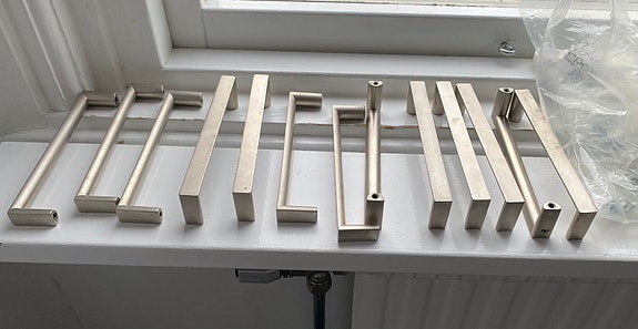 Genom att köpa delar av köksinredningen begagnad, som köksskåpsluckor, skiljeväggar eller bänkskivor, kan du spara pengar. Fundera också på om en totalrenovering verkligen behövs eller om det räcker med att byta ut köksluckorna på dina befintliga skåp. När du överväger att köpa begagnad köksinredning eller köksstommar - tänk på att kontrollera mått, material och skicket.