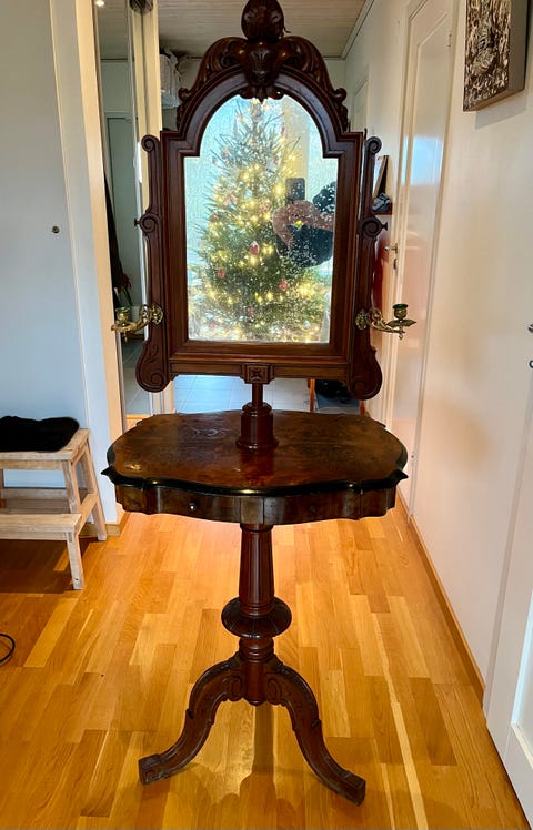 Antikt spegelbord i trä