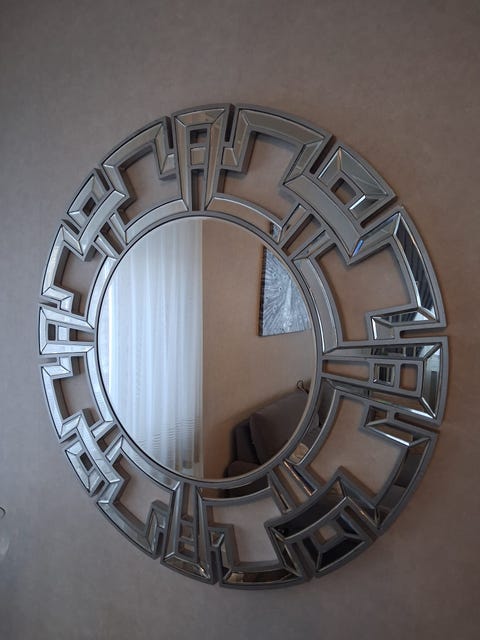 En rund spegel kan bryta av det fyrkantiga och lite hårda uttrycket