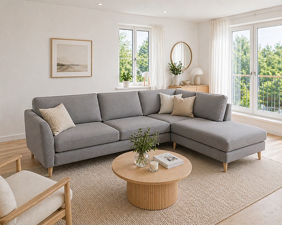 Ny L-soffa i tyg Finns på lager